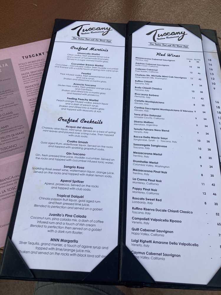 Introducing Tuscany Italian Restaurant, a charming Italian eatery in Woodstock, GA. Known for its welcoming atmosphere and exceptional service, Tuscany offers a diverse menu with options for all tastes. From mouthwatering appetizers like Calamari Fritti and Flat Bread Toscano to decadent entrees such as Veal Tuscany and Pollo Fiorentino, every dish is prepared to perfection. The ambiance is warm and inviting, perfect for intimate dinners or large gatherings. The attentive staff, led by servers like Victoria and Eden, go above and beyond to ensure a memorable dining experience. Owners Juan and Malek are actively involved in creating a welcoming environment for all guests. Whether you're looking for a romantic night out or a family celebration, Tuscany Italian Restaurant promises an unforgettable dining experience.